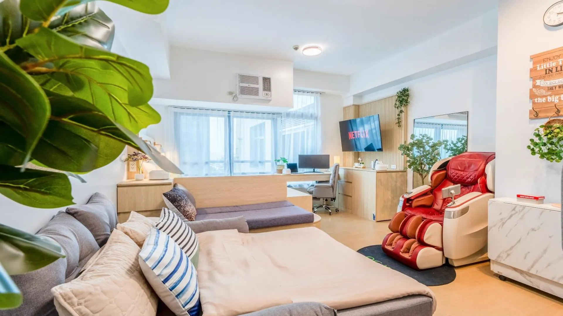 Este apartamento de 33 m², Eastwood Legrand 3 With Ogawa Masterdriveplus, No Pets Allowed Manila, está situado en el distrito Ciudad Quezón, a poco más de 5 minutos a pie del Centro Comercial Eastwood, y cuenta con un centro de fitness. En el apartamento, los visitantes pueden disfrutar de envolturas corporales, una exfoliación corporal y pedicura y hacer ejercicio en instrucciones de yoga.